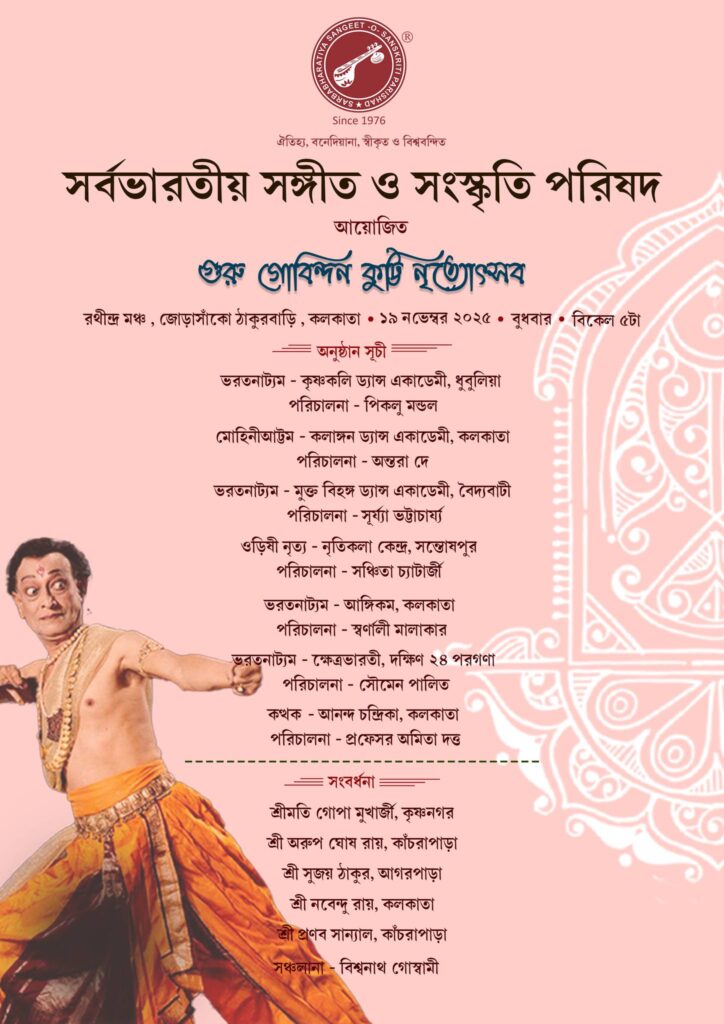 সর্বভারতীয় সঙ্গীত ও সংস্কৃতি পরিষদের উদ্যোগে অনুষ্ঠিত তিন দিনের বিশেষ নৃত্যোৎসব “গুরু গোবিন্দন কুট্টি নৃত্যোৎসব” একটি নজরকাড়া সমাপনী অনুষ্ঠানের মাধ্যমে শেষ হলো। মহান কথাকলি নৃত্যশিল্পী গুরু গোবিন্দন কুট্টির প্রতি শ্রদ্ধা ও ভালোবাসা জানিয়ে এই উৎসবের আয়োজন করা হয়েছিল, যা নৃত্যকলার একটি অসাধারণ মেলবন্ধনে পরিণত হয়।